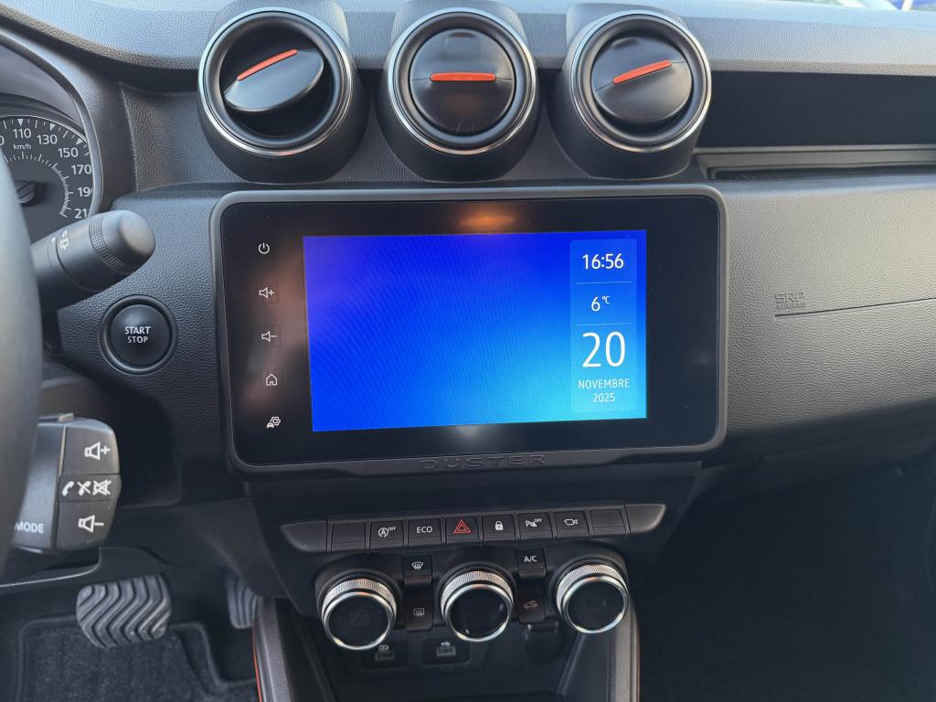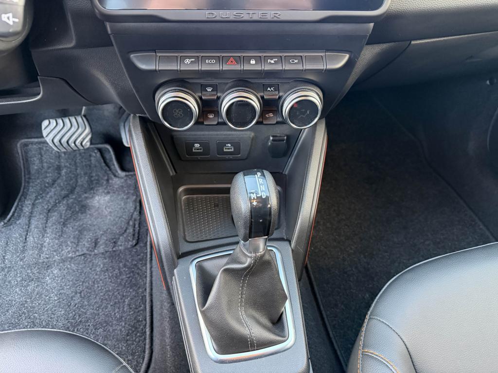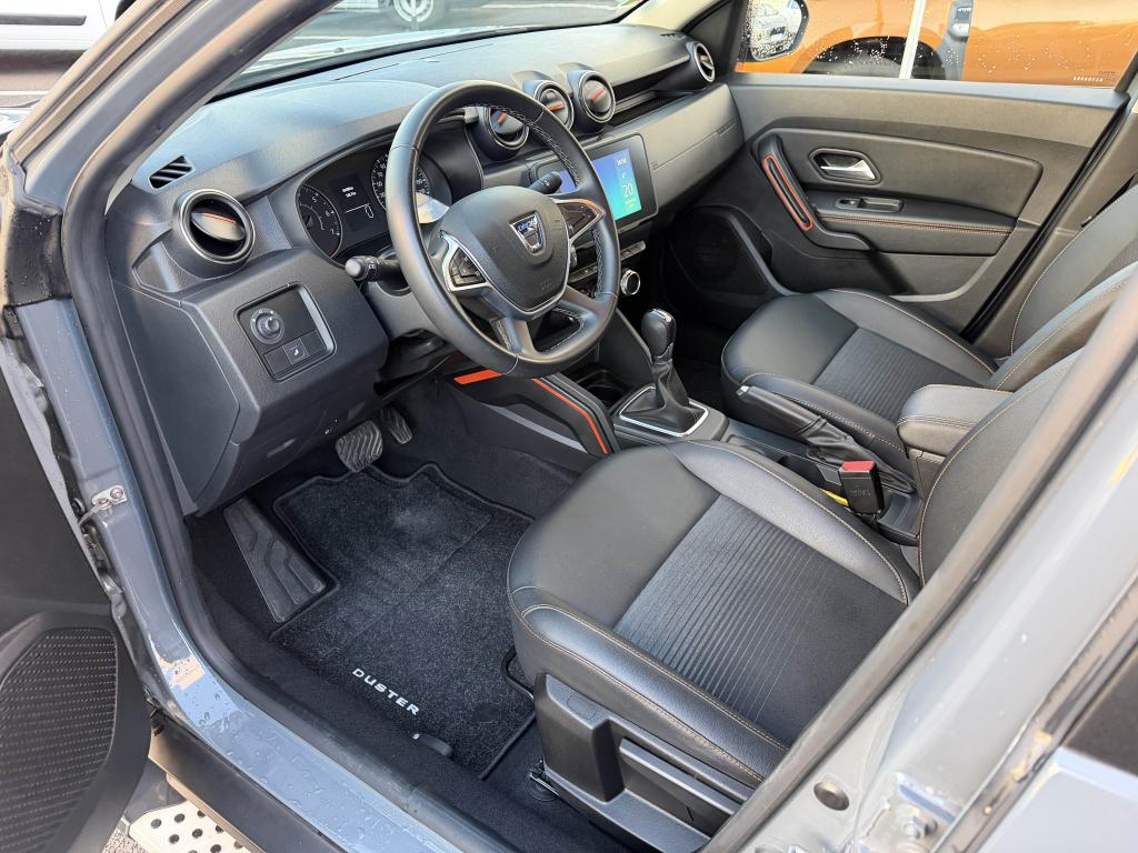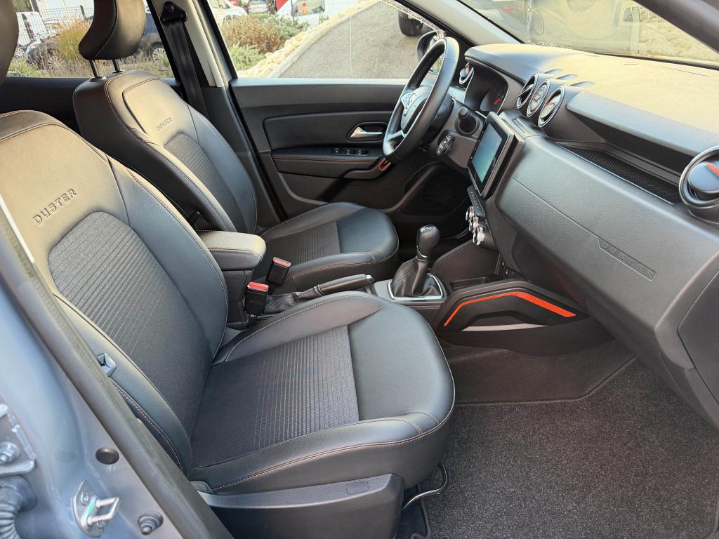 2 spots de lecture conducteur et passager avant3e ceinture arrière 3 points (enrouleur)ABS avec aide au freinage d'urgenceAide au démarrage en côte (HSA)Airbag frontal conducteurAirbag frontal passager déconnectableAirbags latérauxAirbags rideauxAlerte visuelle et sonore du non-bouclage ceinture avantAvertisseur d'angles mortsBanquette arrière rabattable et fractionnable 1/3-2/3Barres de toit chrome satiné avec inscription DusterCaméra MultivuesCanule d'échappement chroméeCarte mains-libresCeintures de sécurité à prétensionneur pyrotechniqueClimatisation automatiqueCondamnation des portes électrique avec télécommande à radiofréquencesCoques de rétroviseur noir grand brillant avec liseré orangeDétails orange sur aérateurs, accoudoir, poignées de tirage et enjoliveurs de console centraleDirection assistée électriqueEclairage boîte à gantsEclairage coffreEco modeEnjoliveur embase levier de vitesses chrome satinFeux de jour automatiquesIndicateur de changement de vitessesJantes alliage 17” Tergan noiresLettrage orange sur barres de toit et hayonLève-vitre électrique conducteur impulsionnelLève-vitres arrière électriquesLève-vitres avant électriquesLunette arrière dégivrante / Essuie-vitre arrière temporiséMédaillons des portes avant en TEP avec surpiqûres orangeMedia Nav 8” : navigation, radio DAB, réplication smartphone wifi, connexion Bluetooth, 6 haut-parleurs (4 haut-parleurs + 2 tweeters), écran tactile 8”Miroir de courtoisie passagerPack ConfortPack Confort +Peinture Gris UrbainPièce identitaire derrière les ailes avant noire avec décorPoches aumônières au dos des sièges avantPoignées de portes couleur carrosseriePoignées de portes intérieures chroméesPrise 12 volts pour passagers arrièrePrises 12 V à l'avantProjecteurs antibrouillardRadars de reculRétroviseurs extérieurs électriques et dégivrantsSellerie Extreme en tissu et TEP, avec surpiqûres orangeSiège conducteur réglable en hauteurSignature lumineuse à LEDSkis avant et arrière chrome satinéSpot de lecture passagers arrièreStripping pied B noir matSystème de contrôle de trajectoire ESCSystème de détection de la pression des pneusSystème de fixations ISOFIX pour siège enfant aux places latérales arrièreSystème Stop & StartTouches de couleur orange sur la calandreVitres surteintéesVolant réglable en hauteur et en profondeur