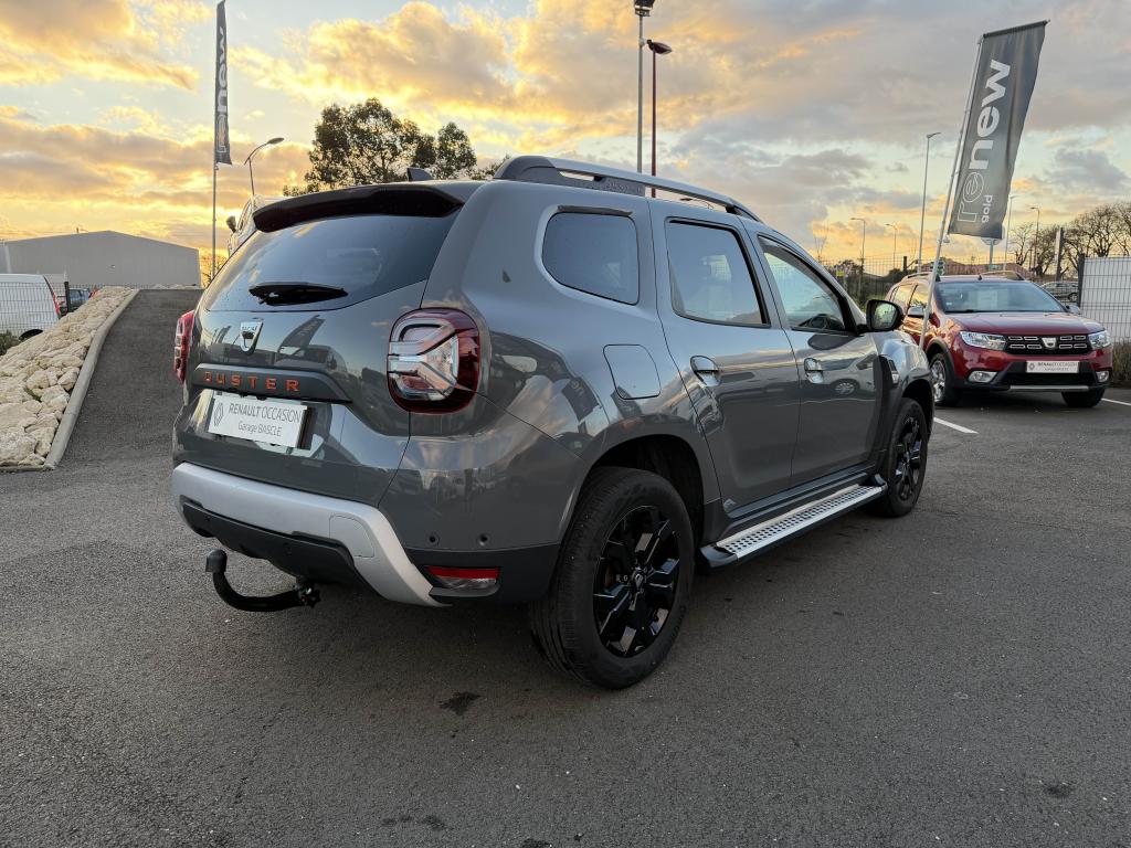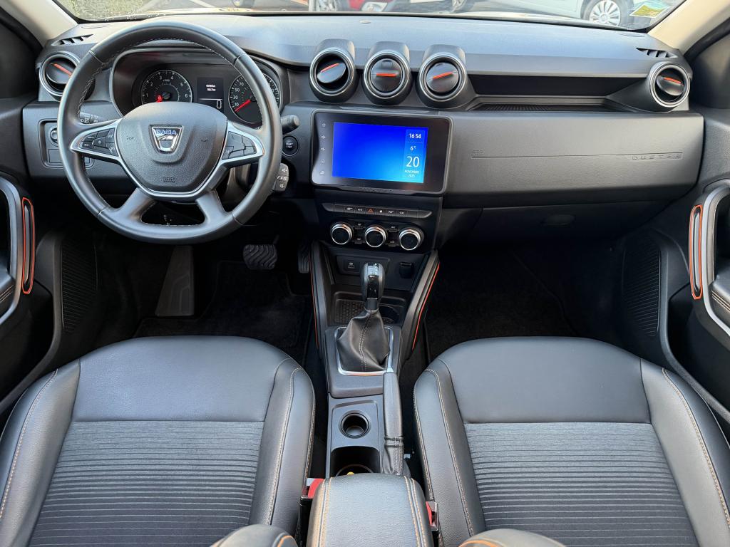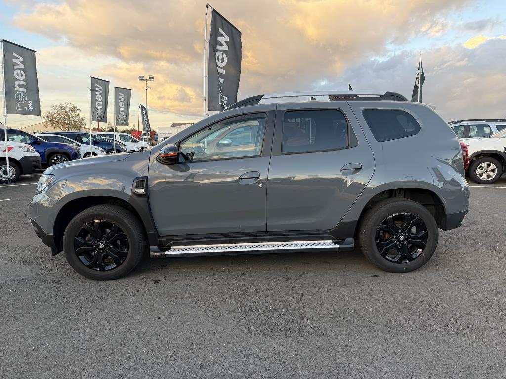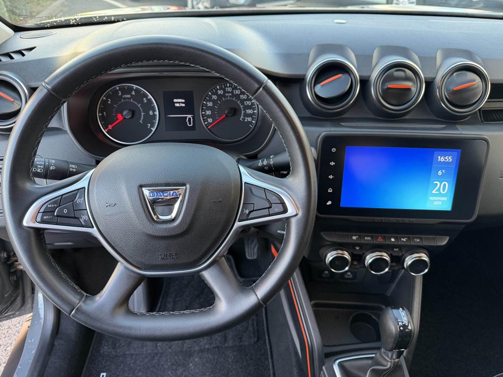 2 spots de lecture conducteur et passager avant3e ceinture arrière 3 points (enrouleur)ABS avec aide au freinage d'urgenceAide au démarrage en côte (HSA)Airbag frontal conducteurAirbag frontal passager déconnectableAirbags latérauxAirbags rideauxAlerte visuelle et sonore du non-bouclage ceinture avantAvertisseur d'angles mortsBanquette arrière rabattable et fractionnable 1/3-2/3Barres de toit chrome satiné avec inscription DusterCaméra MultivuesCanule d'échappement chroméeCarte mains-libresCeintures de sécurité à prétensionneur pyrotechniqueClimatisation automatiqueCondamnation des portes électrique avec télécommande à radiofréquencesCoques de rétroviseur noir grand brillant avec liseré orangeDétails orange sur aérateurs, accoudoir, poignées de tirage et enjoliveurs de console centraleDirection assistée électriqueEclairage boîte à gantsEclairage coffreEco modeEnjoliveur embase levier de vitesses chrome satinFeux de jour automatiquesIndicateur de changement de vitessesJantes alliage 17” Tergan noiresLettrage orange sur barres de toit et hayonLève-vitre électrique conducteur impulsionnelLève-vitres arrière électriquesLève-vitres avant électriquesLunette arrière dégivrante / Essuie-vitre arrière temporiséMédaillons des portes avant en TEP avec surpiqûres orangeMedia Nav 8” : navigation, radio DAB, réplication smartphone wifi, connexion Bluetooth, 6 haut-parleurs (4 haut-parleurs + 2 tweeters), écran tactile 8”Miroir de courtoisie passagerPack ConfortPack Confort +Peinture Gris UrbainPièce identitaire derrière les ailes avant noire avec décorPoches aumônières au dos des sièges avantPoignées de portes couleur carrosseriePoignées de portes intérieures chroméesPrise 12 volts pour passagers arrièrePrises 12 V à l'avantProjecteurs antibrouillardRadars de reculRétroviseurs extérieurs électriques et dégivrantsSellerie Extreme en tissu et TEP, avec surpiqûres orangeSiège conducteur réglable en hauteurSignature lumineuse à LEDSkis avant et arrière chrome satinéSpot de lecture passagers arrièreStripping pied B noir matSystème de contrôle de trajectoire ESCSystème de détection de la pression des pneusSystème de fixations ISOFIX pour siège enfant aux places latérales arrièreSystème Stop & StartTouches de couleur orange sur la calandreVitres surteintéesVolant réglable en hauteur et en profondeur
