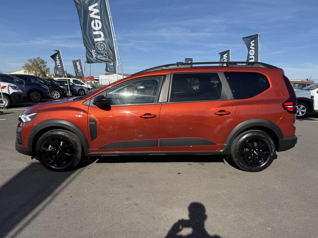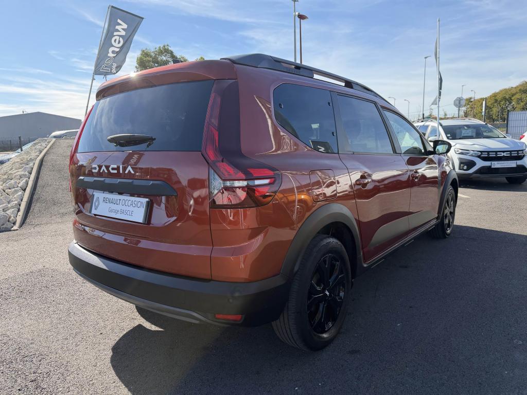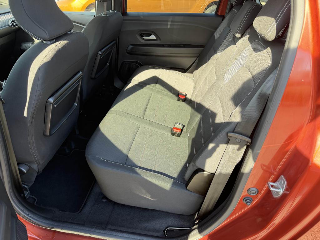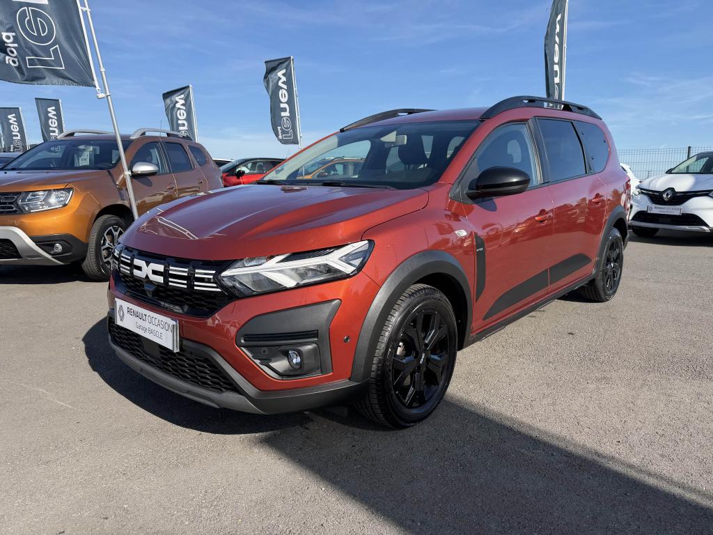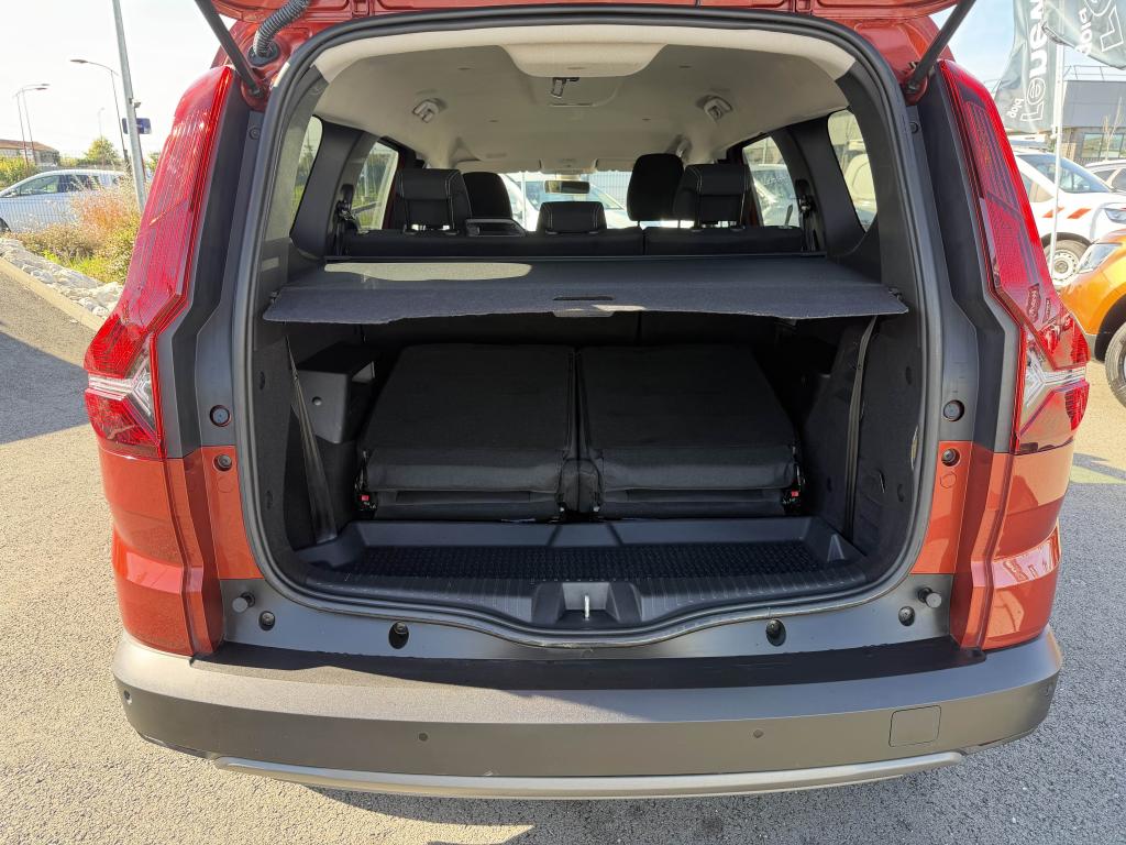 2 sièges rang 3 rabattables et amovibles de manière indépendanteAide au parking avantAide au stationnement arrièreAirbag frontal conducteurAirbag frontal passager déconnectableAirbags latéraux thorax conducteur et passager + Airbags rideaux de tête avant et arrièreAllumage automatique des essuie-glacesAntenne de type requin couleur noir brillantAppel d'urgence - EcallBanquette arrière rabattable et fractionnable 1/3-2/3Barres de toit longitudinales modulairesBoucliers avant et arrière ton carrosserieCalandre noire logo Dacia BlancCaméra de reculCarte mains-libresCeintures de sécurité AV et latérales AR à prétensionneurs et limiteurs d'effortCentre des aérateurs Gris FuméClimatisation automatiqueCondamnation des portes électriques, condamnation automatique en roulant incluseConsole centrale haute avec accoudoir central et espace de rangementContours des aérateurs Gris fuméContrôle de pression des pneus ( TPMS )Contrôle dynamique de trajectoire (ESP) avec aide au démarrage en côteDesign outdoor spécifique avec strippings latérauxDétecteur d'angle mortDirection assistée électriqueEco modeEnjoliveur Brun Cuivré sur les panneaux des portes avantExtended GripFeux de jour automatiques à LEDFrein de parking électriqueFreinage actif d’urgence (AEBS Interurbain)Garde au sol surelevéeJantes en aluminium 16" Mahalia noir brillantKit de gonflageLettrage Dacia arrière Brun CuivréLève-vitre impulsionnel conducteur (avec fonction antipincement)Lève-vitres arrière électriquesLève-vitres avant électriques conducteur et passagerLimiteur de vitesse avec avertisseur sonoreMedia NAV : navigation, radio DAB, réplication smartphone wifi, connexion Bluetooth, six haut-parleurs (4 haut-parleurs + 2 tweeters), écran tactile 8”, support téléphone amovible + 1 USB supplémentaire en bas de la console centraleOrdinateur de bord : distance parcourue, vitesse moyenne, autonomie, consommation moyennePoignées de portes couleur carrosseriePoignées de portes intérieures Gris AcierPrise USBPrises 12 V à l'avant et à l'arrièreProjecteurs antibrouillardProtection de passages de roue et bas de marche noirsRégulateur de vitesseRétroviseurs extérieurs à réglage électriqueRétroviseurs extérieurs Brun CuivréRevêtement en TEP Micro Cloud sur la planche de bord et les accoudoirs des portes avantRoue de secoursSellerie Mixte TEP Micro Cloud avec surpiqûres Brun Cuivré et embossage avec l'emblème DaciaSiège conducteur réglable en hauteurSignature lumineuse à LEDSkis avant / arrière Gris MégalitheSticker type snorkelStop & StartSurtapis caoutchouc marquage Dacia et seuil de porte avantSystème antiblocage des roues (ABS) & Assistance au freinage d'urgence (AFU)Système de fixation Isofix pour siège enfant aux places latérales du rang 2Tablettes aviation au dos des sièges de la 1ère rangéeVitres arrière surteintéesVitres de custode entrebaîllantesVolant réglable en hauteurVolant réglable en profondeurVolant soft feel et pièce déco gris acier