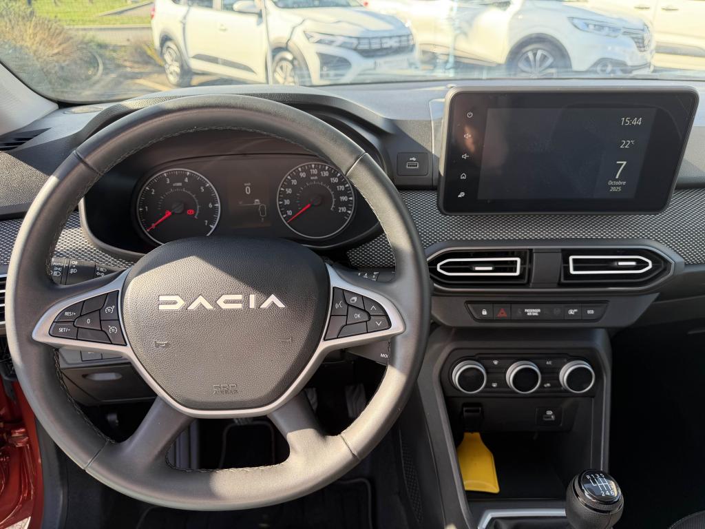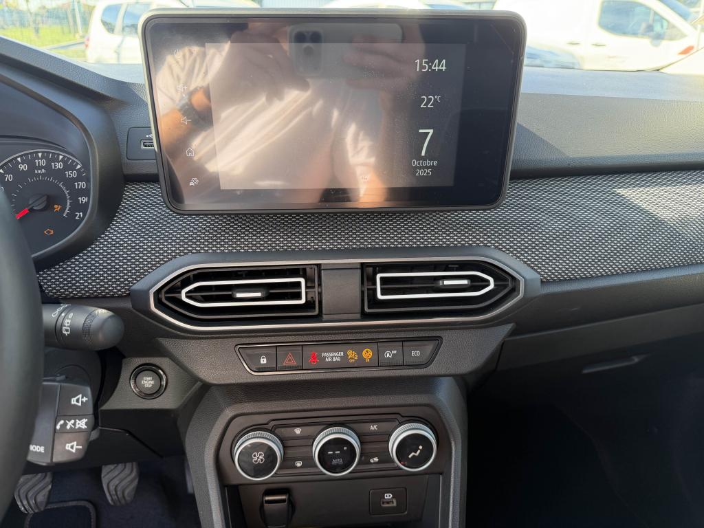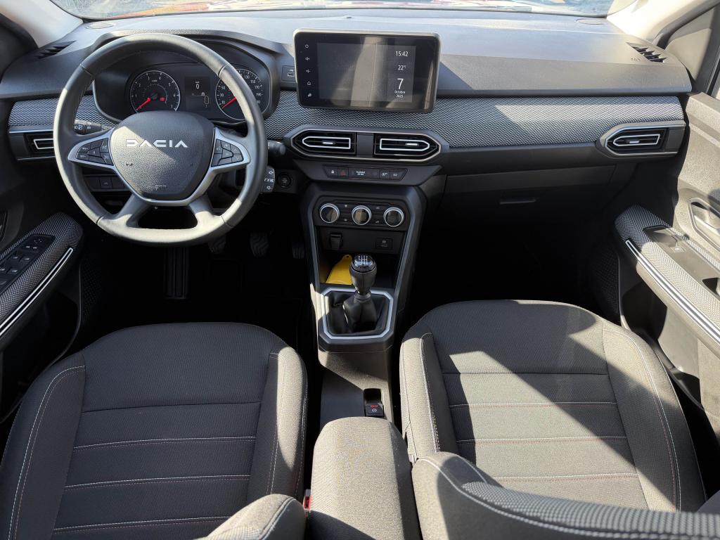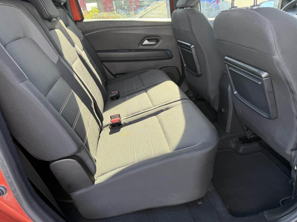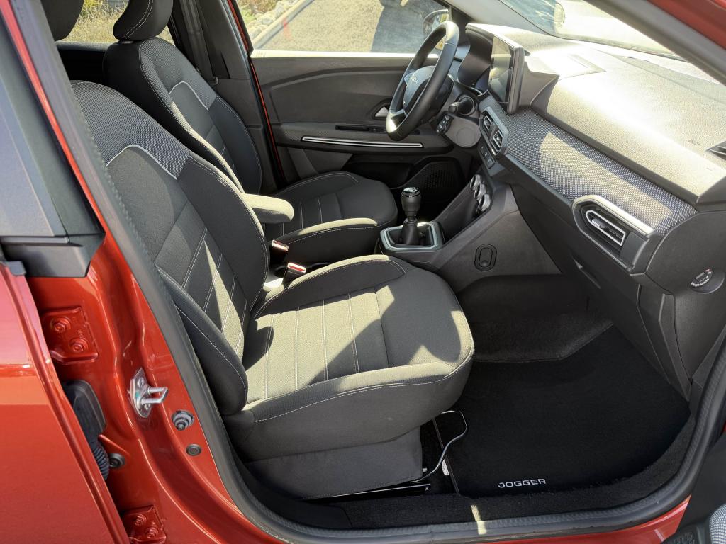 2 sièges rang 3 rabattables et amovibles de manière indépendanteAide au parking avantAide au stationnement arrièreAirbag frontal conducteurAirbag frontal passager déconnectableAirbags latéraux thorax conducteur et passager + Airbags rideaux de tête avant et arrièreAllumage automatique des essuie-glacesAntenne de type requin couleur noir brillantAppel d'urgence - EcallBanquette arrière rabattable et fractionnable 1/3-2/3Barres de toit longitudinales modulairesBoucliers avant et arrière ton carrosserieCalandre noire logo Dacia BlancCaméra de reculCarte mains-libresCeintures de sécurité AV et latérales AR à prétensionneurs et limiteurs d'effortCentre des aérateurs Gris FuméClimatisation automatiqueCondamnation des portes électriques, condamnation automatique en roulant incluseConsole centrale haute avec accoudoir central et espace de rangementContours des aérateurs Gris fuméContrôle de pression des pneus ( TPMS )Contrôle dynamique de trajectoire (ESP) avec aide au démarrage en côteDesign outdoor spécifique avec strippings latérauxDétecteur d'angle mortDirection assistée électriqueEco modeEnjoliveur Brun Cuivré sur les panneaux des portes avantExtended GripFeux de jour automatiques à LEDFrein de parking électriqueFreinage actif d’urgence (AEBS Interurbain)Garde au sol surelevéeJantes en aluminium 16" Mahalia noir brillantKit de gonflageLettrage Dacia arrière Brun CuivréLève-vitre impulsionnel conducteur (avec fonction antipincement)Lève-vitres arrière électriquesLève-vitres avant électriques conducteur et passagerLimiteur de vitesse avec avertisseur sonoreMedia NAV : navigation, radio DAB, réplication smartphone wifi, connexion Bluetooth, six haut-parleurs (4 haut-parleurs + 2 tweeters), écran tactile 8”, support téléphone amovible + 1 USB supplémentaire en bas de la console centraleOrdinateur de bord : distance parcourue, vitesse moyenne, autonomie, consommation moyennePoignées de portes couleur carrosseriePoignées de portes intérieures Gris AcierPrise USBPrises 12 V à l'avant et à l'arrièreProjecteurs antibrouillardProtection de passages de roue et bas de marche noirsRégulateur de vitesseRétroviseurs extérieurs à réglage électriqueRétroviseurs extérieurs Brun CuivréRevêtement en TEP Micro Cloud sur la planche de bord et les accoudoirs des portes avantRoue de secoursSellerie Mixte TEP Micro Cloud avec surpiqûres Brun Cuivré et embossage avec l'emblème DaciaSiège conducteur réglable en hauteurSignature lumineuse à LEDSkis avant / arrière Gris MégalitheSticker type snorkelStop & StartSurtapis caoutchouc marquage Dacia et seuil de porte avantSystème antiblocage des roues (ABS) & Assistance au freinage d'urgence (AFU)Système de fixation Isofix pour siège enfant aux places latérales du rang 2Tablettes aviation au dos des sièges de la 1ère rangéeVitres arrière surteintéesVitres de custode entrebaîllantesVolant réglable en hauteurVolant réglable en profondeurVolant soft feel et pièce déco gris acier
