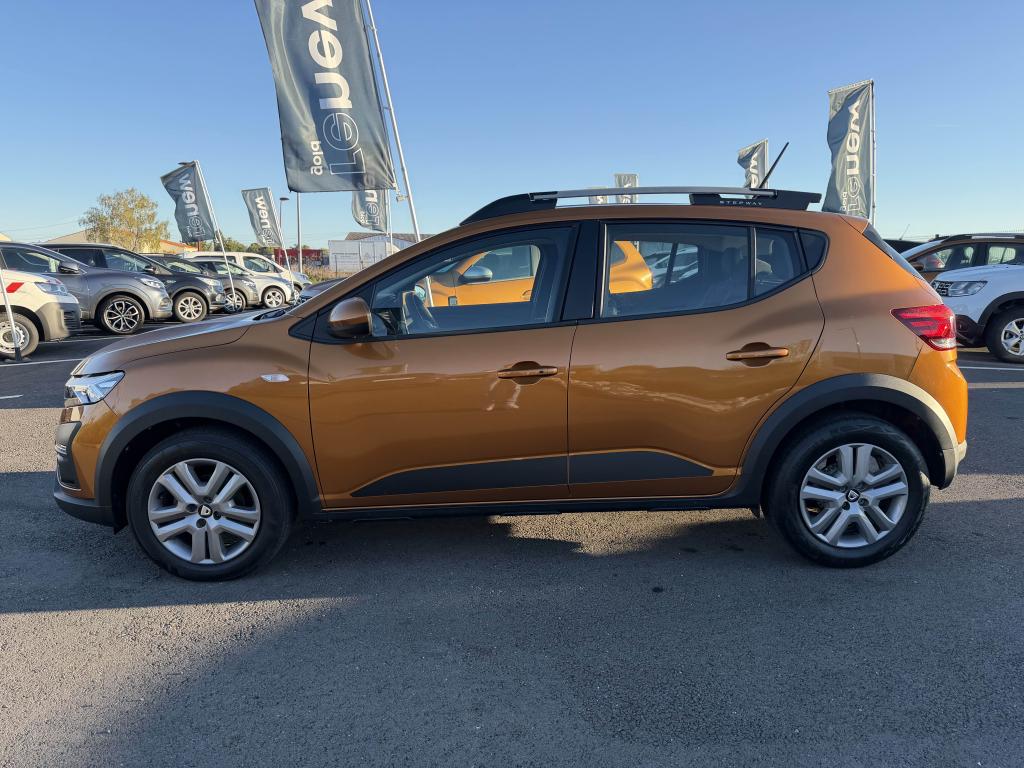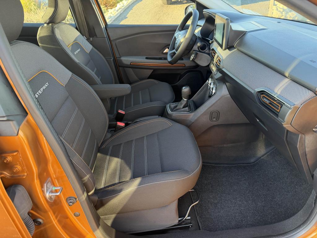 2 poignées de maintien passager arrière avec crochet 2e rangée (pliable)4 crochets de coffreABS avec aide au freinage d'urgenceAccoudoir central avantAide au démarrage en côteAide au stationnement arrièreAirbags conducteur et passagerAirbags latéraux thorax + rideaux avant et arrièreAllumage automatique des feux et feux de jour à LEDAppel d'urgence - EcallBanquette arrière rabattable et fractionnable 1/3-2/3Barres de toit longitudinales modulaires (gris quartz)Boucliers avant et arrière ton carrosserieBoutons de commandes volant pour ordinateur de bordCalandre avec inscription "Stepway" chroméeCalandre chroméeCeintures de sécurité avant et arrière avec limiteurs d'effort et prétensionneurs (uniquement au places latérales pour l'AR)Climatisation automatiqueCondamnation automatique des portes en roulantCondamnation des portes électrique avec télécommande à radiofréquencesConsole centrale avec rangement ouvertContours des aérateurs chrome satin et orange cuivreContrôle de pression des pneus ( TPMS )Crochet escamotable côté passagerDirection assistée électriqueEclairage plafonnier avant côté conducteur/passagerEnjoliveur 16" Saria gris foncéEnjoliveur Orange sur les panneaux de portes avantEPS : Contröle électronique de stabilitéEssuie-glace à déclenchement automatiqueFeux de brouillard avant avec enjoliveur chroméFrein de parking manuelFreinage actif d’urgence (AEBS Interurbain)Kit de gonflageLève-vitres arrière électriquesLève-vitres impulsionnel anti-pincement conducteur et électrique passager avantLimiteur de vitesse avec avertisseur sonoreMedia Display 8” : Radio DAB + smartphone replication via câble USB, connexion Bluetooth, 4 haut-parleurs, écran tactile 8” + support téléphone amovibleMiroir de courtoisie côté conducteur et passagerOrdinateur de bord : distance parcourue, vitesse moyenne, autonomie, consommation moyennePoignées de portes couleur carrosseriePoignées de portes intérieures finition chrome satinéPommeau de levier de vitesse avec insert chroméPrise 12V avant et arrièrePrise USBProjecteurs antibrouillardProtection de bas de caisse noireProtections de passages de roue noiresRégulateur de vitesseRétroviseurs extérieurs couleur carrosserieRétroviseurs extérieurs réglables électriquementRevêtement tissu sur la planche de bord et accoudoirs portes avantSellerie Stepway à insertions et surpiqures orangeSignature lumineuse à LEDSkis avant/arrière chromésSystème de fixation Isofix pour siège enfant aux places latérales arrièreSystème Stop & StartVolant réglable en hauteurVolant réglable en profondeurVolant Softfeel