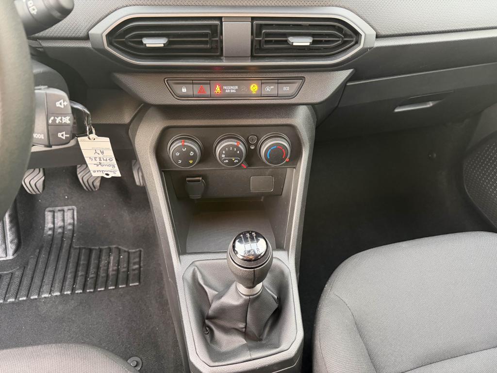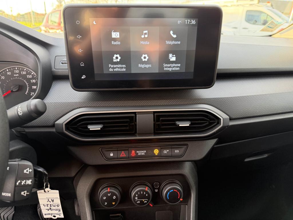 ABS avec aide au freinage d'urgenceAide au démarrage en côteAirbags conducteur et passagerAirbags latéraux épaules et rideauxAppel d'urgence - EcallBanquette arrière rabattable et fractionnable 1/3-2/3Boucliers avant et arrière ton carrosserieCalandre BlancheCondamnation automatique des portes en roulantCondamnation des portes électrique avec télécommande à radiofréquencesContours des aérateurs Gris fumé et curseurs blancsContrôle de pression des pneus ( TPMS )Direction assistée électriqueEléments décoratifs intérieurs de couleur Gris FuméEnjoliveur 15" ElmaEPS : Contröle électronique de stabilitéFeux de jour automatiques à LEDFreinage actif d’urgence (AEBS Interurbain)Kit de gonflageLève-vitres avant électriques conducteur et passagerLimiteur de vitesse avec avertisseur sonoreMedia Control : Radio DAB avec commandes sur le volant, affichage intégré dans l’écran de l’ordinateur de bord, support smartphone fixe sur la planche de bord, 2 haut-parleurs avant, connexion Bluetooth, application mobile Dacia Media ControlOrdinateur de bord : distance parcourue, vitesse moyenne, autonomie, consommation moyennePanneaux de porte Noir TitanePlafonnier avantPoignée de portes extérieures noiresPoignées de portes intérieures noiresPrise 12V à l'avantPrise USB avantProgramme Eco-modeRégulateur de vitesseRétroviseurs extérieurs couleur noirRétroviseurs extérieurs manuels, réglables de l'intérieurSellerie spécifique EssentialSignature lumineuse à LEDSystème de fixation Isofix pour siège enfant aux places latérales arrièreSystème Stop & StartVolant réglable en hauteur