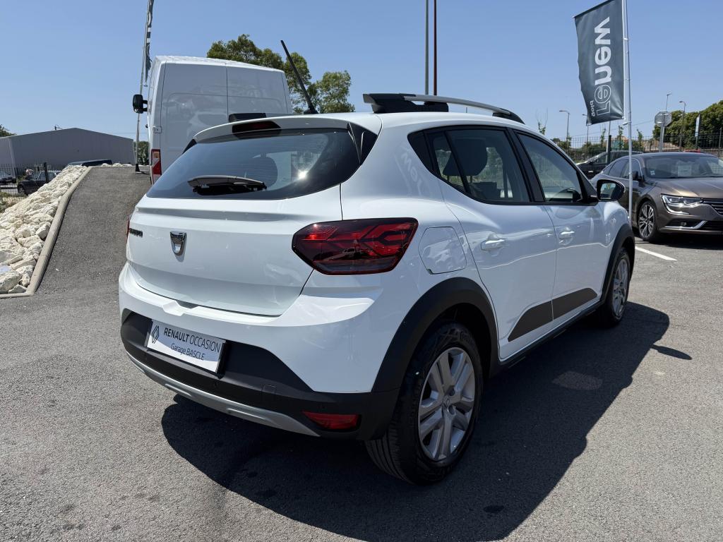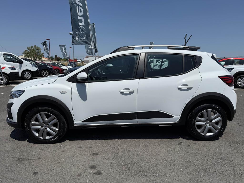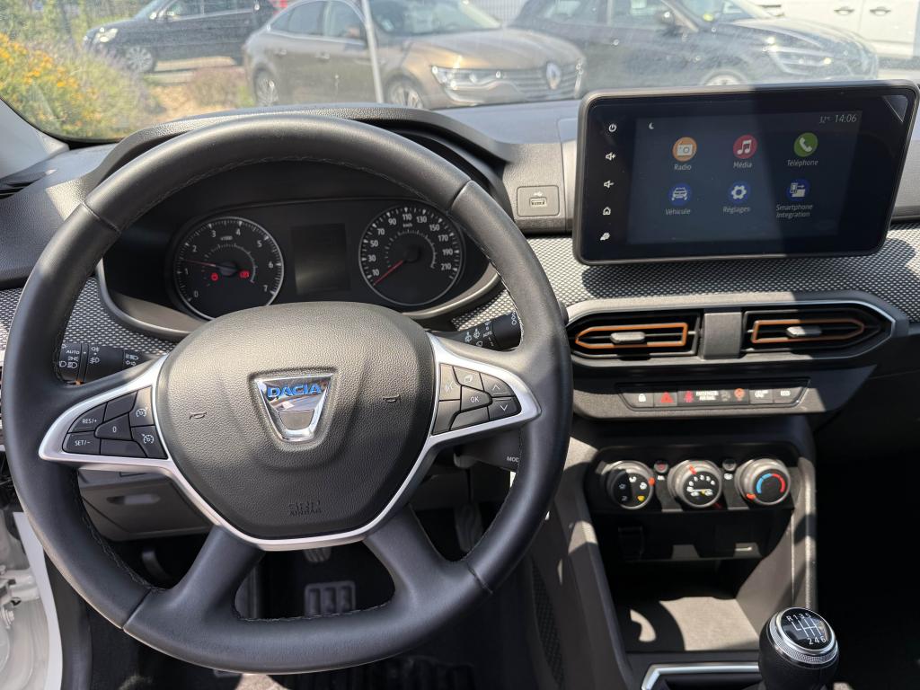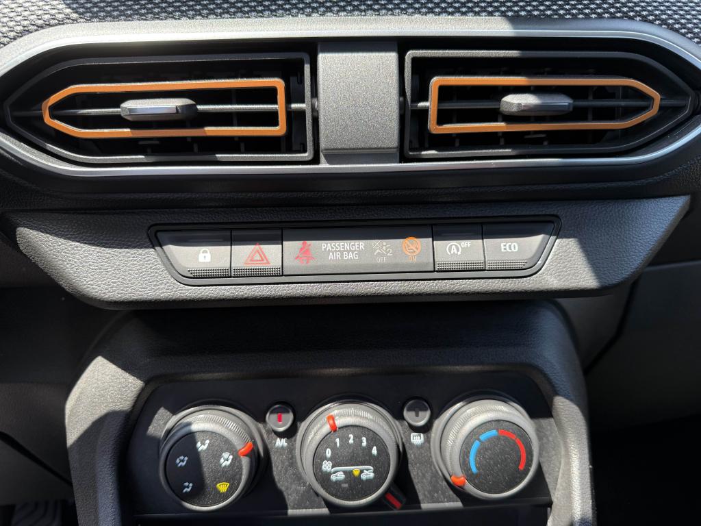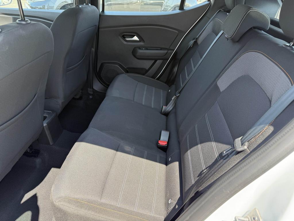 ABS avec aide au freinage d'urgenceAccoudoir central avantAide au démarrage en côteAide au stationnement arrièreAirbags conducteur et passagerAirbags latéraux thorax + rideaux avant et arrièreAppel d'urgence - EcallBanquette arrière rabattable et fractionnable 1/3-2/3Barres de toit longitudinales modulaires (gris quartz)Boucliers avant et arrière ton carrosserieBoutons de commandes volant pour ordinateur de bordCalandre avec inscription "Stepway" chroméeCalandre chroméeClimatisation manuelleCondamnation automatique des portes en roulantCondamnation des portes électrique avec télécommande à radiofréquencesContours des aérateurs chrome satin et orange cuivreContrôle de pression des pneus ( TPMS )Direction assistée électriqueEclairage du coffreEnjoliveur Orange sur les accoudoirs des portes avantEnjoliveurs Flexwheel 16” Saria - gris foncé avec logo Dacia chroméEPS : Contröle électronique de stabilitéEssuie-glace à déclenchement automatiqueFeux de brouillard avant avec enjoliveur chroméFeux de jour automatiques à LEDFreinage actif d’urgence (AEBS Interurbain)Kit de gonflageLève-vitres arrière électriquesLève-vitres impulsionnel anti-pincement conducteur et électrique passager avantLimiteur de vitesse avec avertisseur sonoreMedia Display 8” : Radio DAB + smartphone replication via câble USB, connexion Bluetooth, 4 haut-parleurs, écran tactile 8” + support téléphone amovibleMiroir de courtoisie côté conducteur et passagerOrdinateur de bord : distance parcourue, vitesse moyenne, autonomie, consommation moyennePlancher de coffre modulable à deux niveauxPoignées de maintien avant (côté passager) et arrièrePoignées de porte extérieures ton carrosserie de type réfrigérateurPoignées de portes intérieures finition chrome satinéPommeau de levier de vitesse avec insert chroméPrise 12V à l'avantPrise USB avantProgramme Eco-modeProjecteurs antibrouillardProtection de passages de roue et bas de marche noirsRégulateur de vitesseRétroviseurs extérieurs couleur carrosserieRétroviseurs extérieurs réglables électriquementRevêtement tissu sur la planche de bord et accoudoirs portes avantSellerie Stepway à insertions et surpiqures orangeSiège conducteur réglable en hauteurSignature lumineuse à LEDSkis avant/arrière chromésSystème de contrôle de trajectoire (ESC) avec fonction antipatinage (ASR)Système de fixation Isofix pour siège enfant aux places latérales arrièreSystème Stop & StartVitres teintéesVolant réglable en hauteurVolant réglable en profondeurVolant Softfeel