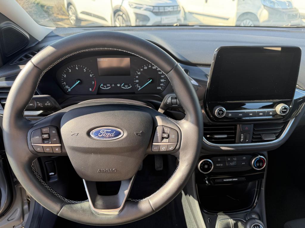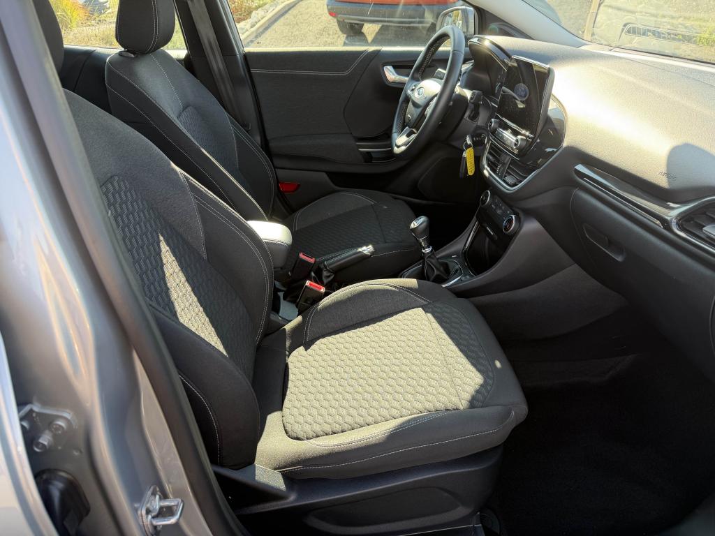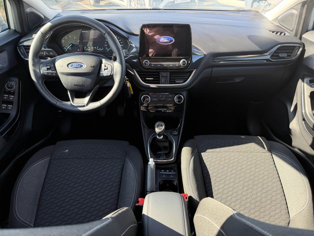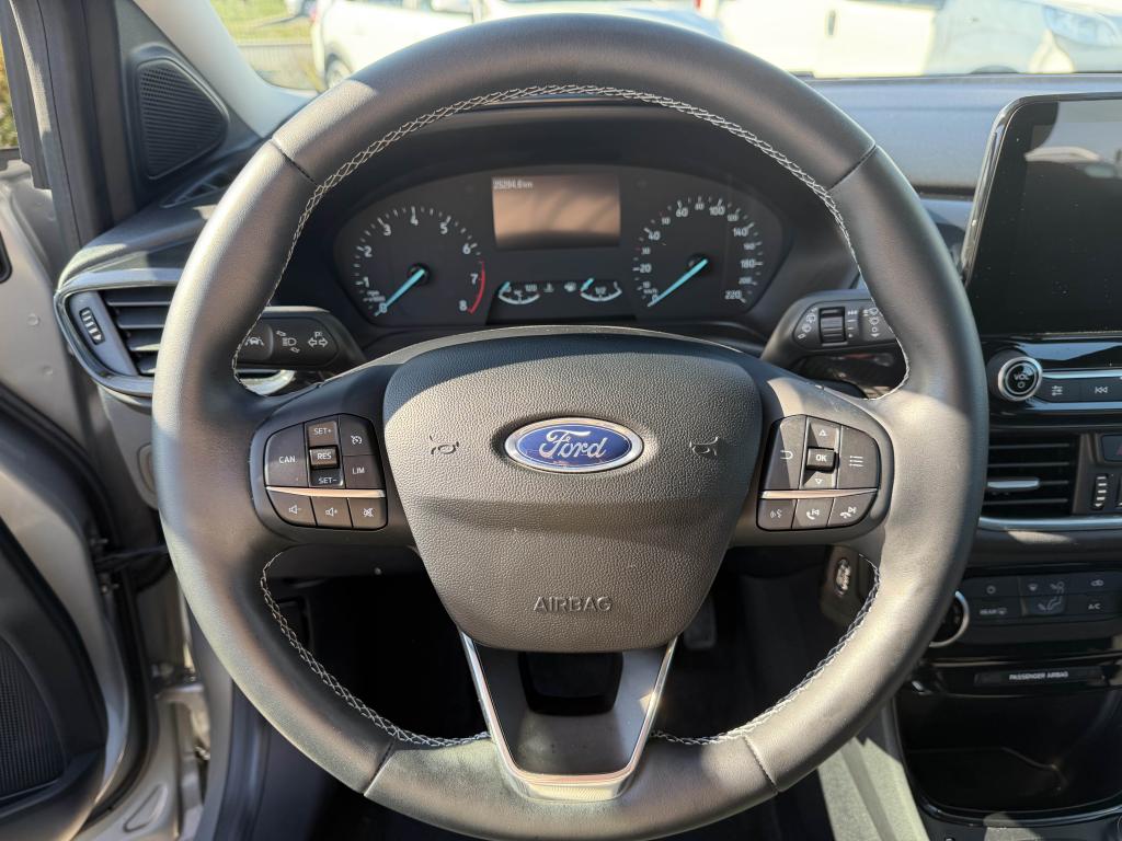 2 Fixations Isofix à l'arrière3 appuie-tête arrière5 ceintures de sécurité 3 points5 Modes de conduite sélectionnables (normal, eco, sport, faible adhérence, trail)Aide au démarrage en côteAide au maintien dans la voie avec détection des bas-côtésAide au stationnement arrièreAirbags frontaux, latéraux (thorax) et rideauxAlerte d'oubli de ceintures avant/arrièreAlerte de franchissement Involontaire de ligneAllumage automatique des projecteursAntipatinageAppuie-tête arrière réglables en hauteurAssistance au freinage d'urgenceAvertisseur de freinage d'urgenceBanquette arrière rabattable 40/60Bas de caisse avec finitions chroméesBecquet arrière couleur carrosserieClimatisation manuelleCombiné d'instrumentation TFT couleur 4,2" avec EcomodeConsole centrale avant avec deux porte-gobelets rétroéclairésConsole centrale avec accoudoir et rangementsContour des vitres latérales en noir finition brillanteCorrecteur électronique de trajectoire ESPDésactivation de l'airbag du passager avantDirection assistée électriqueEclairage d'ambiance intérieurEssuie-glace avec intermittence réglable et système antigoutteFeux arrière à LEDFeux de jour à LEDFeux de route intelligents (passage feux de croisement/route automatique)FordPass Connect avec modem embarqué et fonction eCallFrein à disques à l'avantGrille de calandre avec barres horizontales et contour façon chromeJantes acier 17" avec enjoliveur structuré 8 branchesKit de réparation pneumatiqueLevier de frein à main gainé de SensicoLevier de vitesses gainé de SensicoLimiteur de vitesse intelligentLogo MHEV sur HayonPédalier designPare-chocs couleur carrosseriePeinture non-métallisée Bleu AbyssePhares avant antibrouillard avec fonction d'éclairage d'anglePrise 12 V sur console centrale avantRégulateur de vitesseRétroviseurs extérieurs électriques couleur carrosserie, dégivrant et rabattables avec rappels de clignotantsSellerie tissu noir Kasbah avec renforts latéraux EtonSiège conducteur réglable en hauteur avec soutien lombairesSuspension standardSystème audio Ford SYNC 3 avec écran tactile 8", commandes vocales, 2 ports USB, alerte contresens, Apple CarPlay et Android auto, 6 hauts-parleursSystème de freinage antiblocage (ABS)Système de Navigation Europe et points d'intérêt MichelinSystème de prévention de collision avec freinage post-collision et détection piétonsSystème de surveillance de pression des pneusSystème MyKey (seconde clé programmable)Système Stop & StartTapis de sol avant avec surpiquresTrappe à carburant Ford EasyFuelVerrouillage centralisé à distanceVitres électriques avant et arrière avec descente et remontée à impulsionVolant 3 branches Sensico