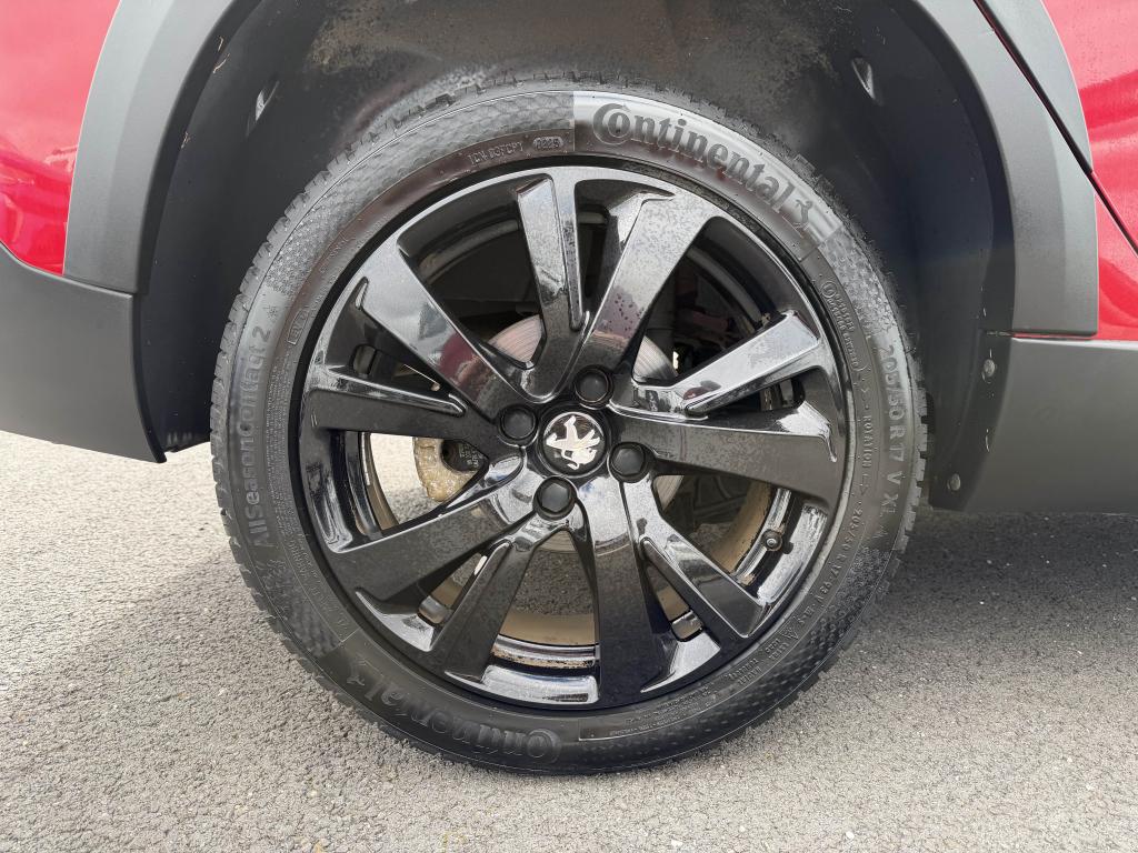 3 appuie-têtes arrière "virgule"ABS (Antiblocage de roues)Afficheur matrice couleurAFU (Assistance au freinage d'urgence), REF (Répartiteur Electronique de Freinage)Aide au stationnement arrièreAirbags frontaux et latéraux conducteur et passager avant (frontal désactivable côté passager)Airbags rideaux de tête aux places avant et arrièreAllumage automatique des feux de détresseAssiette de caisse réhausséeAssistance au démarrage en côte (Hill Assist)Baguettes de bas de portes noiresBanquette arrière rabattable (2/3 -1/3) avec modularité Magic FlatBarres de toit Noir brillantBas de caisse noir matBecquet couleur caisse avec enjoliveur noir brillant (chrome si teinte Noir Perla Nera)Boîte à gants ventiléeCanule d'échappement chroméeCeintures de sécurité arrière 3 points et fixations ISOFIX aux places latéralesCeintures de sécurité avant avec enrouleurs pyrotechniques et limiteurs d'effortClimatisation automatique bi-zoneCombiné premium avec cerclage à LEDs rougesContrôle dynamique de stabilité (ESP) et antipatinage des roues (ASR)Coques de rétroviseurs extérieurs Noir Perla NeraCrosses de portes noir brillant avec liseré rouge à l'avantDétecteurs de sous-gonflageDirection électrique à assistance variableEclairage d'accompagnement "Follow me Home"Eclairage de coffreEclairage des caves à piedsEcran tactile multifonction : écran tactile 7'', radio bi-tuner 4x25W (4HP, 2 tweeters), traitement du son Arkamys, ports USB & Jack déportésEnjoliveurs de pied milieu noir laquéEnjoliveurs de projecteur antibrouillard Noir Perla NeraEnjoliveurs supérieur de portes arrières Noir Perla Nera (chrome si teinte Noir Perla Nera)Essuie-glace arrière avec déclenchement automatique en marche arrièreFeux arrière à griffes 3D LEDsFrein à main type aviationGarnissage TEP/Tissu OXFORD Mistral/Rouge avec surpiqûres rougesIndicateur de changement de rapport de vitesse (assistance à l'eco-conduite)Indicateur de température extérieureJantes alliage 17" diamantées Eridan noir brillantJonc de calandre Noir Perla NeraKit de dépannage pneumatique (anneau de remorquage, compresseur et flacon de produit de colmatage)Kit mains libres bluetooth avec fonction streaming audioLettrage de calandre PEUGEOT rougeMiroirs de courtoisieMonogrammes arrière et latéraux GT LineNavigation 3D connectée avec reconnaissance vocale, fonction Mirror ScreenOrdinateur de bord déporté sur écran tactilePack VisibilitéPassages de roues rapportés noirsPédalier sport en aluminiumPeinture opaque Gris HurricanePeugeot Connect SOS & AssistancePEUGEOT i-Cockpit : Poste de pilotage innovant associant combiné tête haute, volant compact et grand écran tactilePhares avant antibrouillard avec fonction ''Corner-light''Plafonnier LEDsPoches aumônières au dos des sièges avantPoignée de frein à main cuir pleine fleurPoignées de portes couleur caissePrises 12V (x2) sur façade technique et console centrale (pour passagers arrière)Projecteurs avant avec masque noir / chromeProjecteurs halogènes avec feux diurnes à LEDsRégulateur et limiteur de vitesseRépétiteurs de clignotants intégrés aux rétroviseurs extérieursRétroviseurs extérieurs chauffants à réglages électriquesRétroviseurs extérieurs rabattables électriquementSabots de protection avant et arrière inoxSeuil de coffre inoxSeuils de portes en aluminiumSiège conducteur avec réglage mécanique de hauteurSiège passager mécanique réglable en hauteurSièges SportSurtapis aux places avant et arrièreSurtapis Noir et surpiqûres RougeTablette cache-bagagesTémoin de non bouclage de la ceinture de sécurité conducteur et passagerVerrouillage automatique des ouvrants en roulantVerrouillage centralisé des portes et du coffre par télécommande HFVide-poche fermé sur console centraleVitres arrière surteintéesVolant cuir fleur perforé et surpiqûres rougesVolant réglable en hauteur et en profondeur