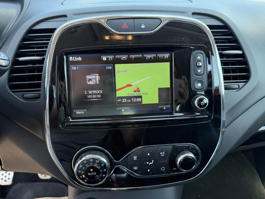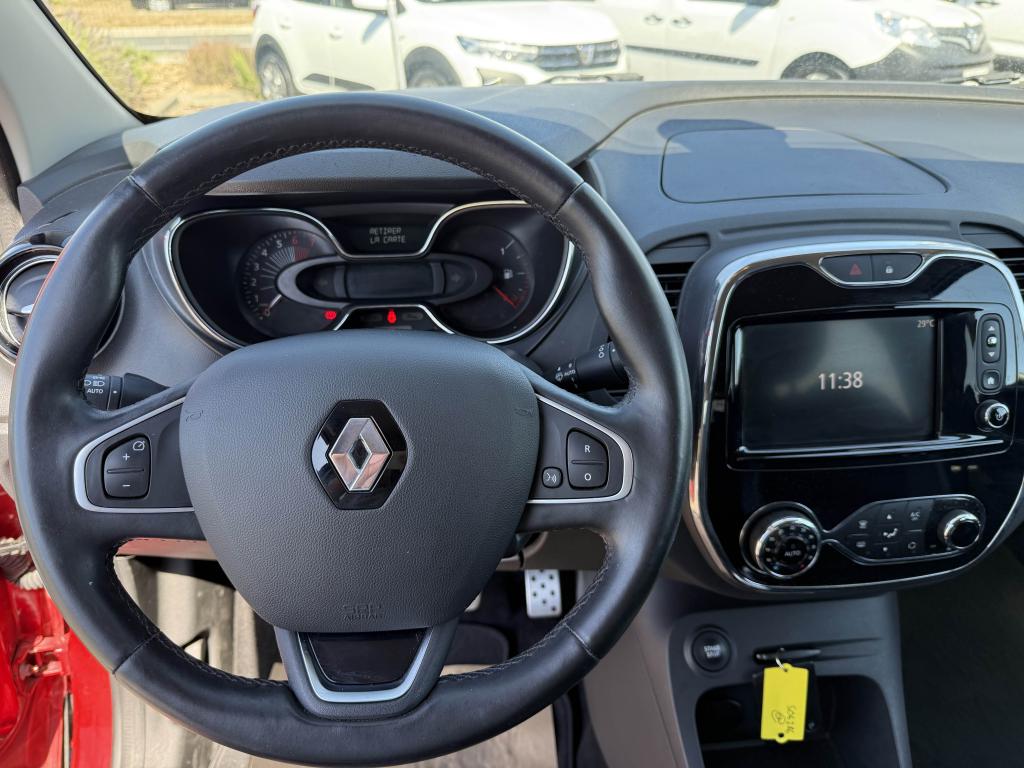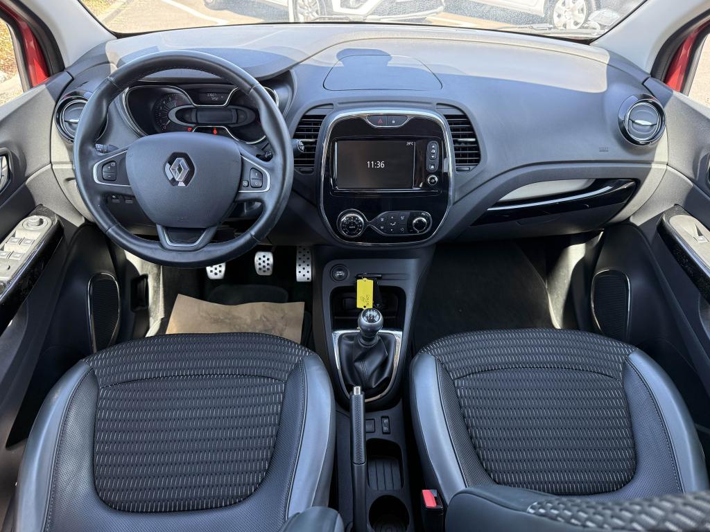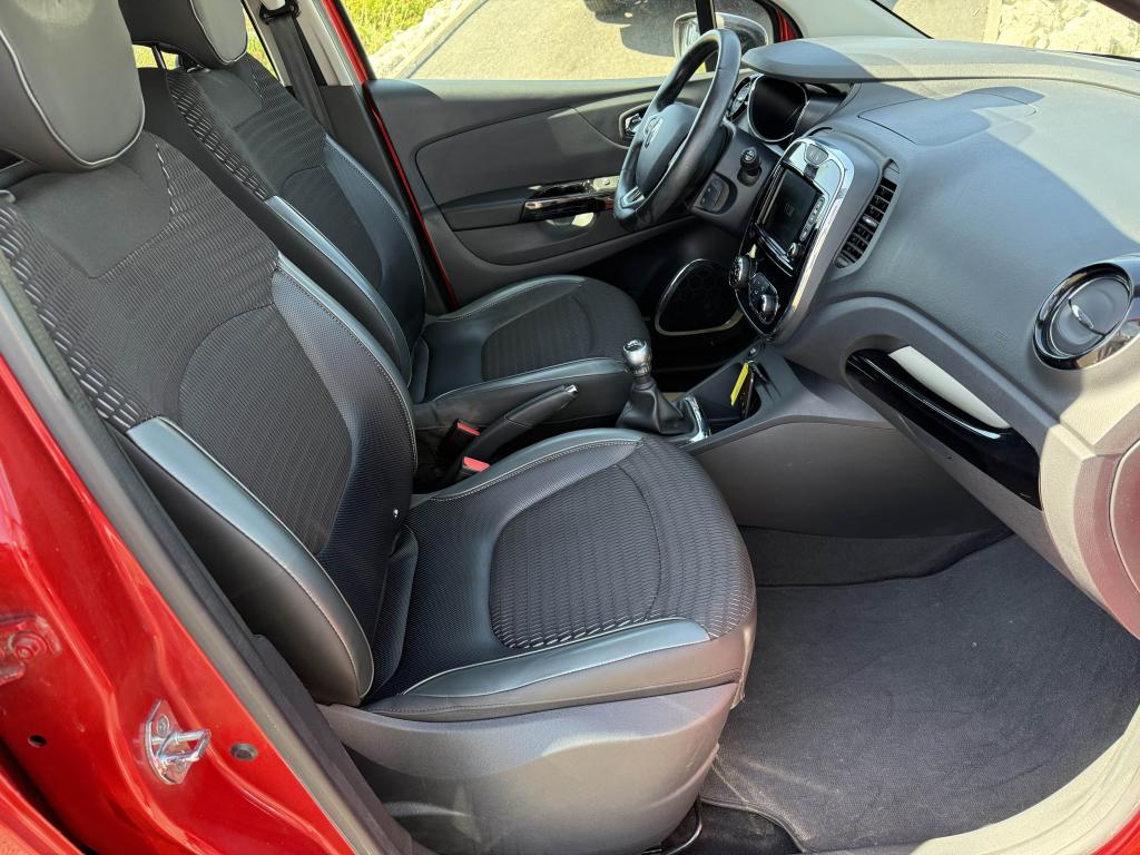 ABS avec aide au freinage d'urgenceAide au démarrage en côteAirbags frontaux et latéraux conducteur et passager déconnectablesAlerte de ceinture de sécurité conducteur et passagerAmbiance foncéeBanquette arrière coulissante, rabattable 1/3 - 2/3 avec 3 appuis-têtesBoucliers ton caisseCarrosserie bi-tonCarte Renault avec accès et démarrage mains-libres avec fermeture à l’éloignementCondamnation automatique des ouvrants en roulantDécors intérieurs Chrome (cerclages aérateurs, console centrale et haut-parleurs)Décors intérieurs Gris (cerclages aérateurs, console centrale et haut-parleurs)Direction assistée électrique avec assistance variableÉlastiques de rangement au dos des sièges avantEmbase de levier de vitesses chroméFeux de jour à LEDJonc de hayon et de feux ChromeJoncs de calandre et de protections inférieures de portes ChromeLève-vitre électrique conducteur impulsionnelLève-vitres électriques avant et arrièreMédiaNav EvolutionMode de conduite Eco avec bouton d'activationOrdinateur de bordPack CityPack ConfortPack look NoirPack PremiumPeinture bi-ton (toit, coques de rétroviseurs, montants de pare-brise)Phares avant antibrouillard avec fonction ''Corner-light''Plancher de coffre réversiblePoignées de portes ton caisseProtections latérales de portes Noir GrainéRadio CD MP3, Bluetooth, prises USB et JackRangement central amovibleRégulateur et limiteur de vitesseRétroviseurs extérieurs noirs brillantsSellerie fixe TEP/Textile Noir&GrisSellerie fixe tissu Bleu et carbone foncéSiège conducteur réglable en hauteurSièges déhoussables Captur avec housses de sièges « Zip Collection »Système de contrôle de trajectoire (ESP) et système antipatinage (ASR)Système de fixation ISOFIX aux places latérales arrière et passager avantSystème de récupération d'énergie au freinageSystème de surveillance de pression des pneusTiroir EasyLife avec éclairageVolant cuir pleine fleurVolant réglable en hauteur et en profondeur