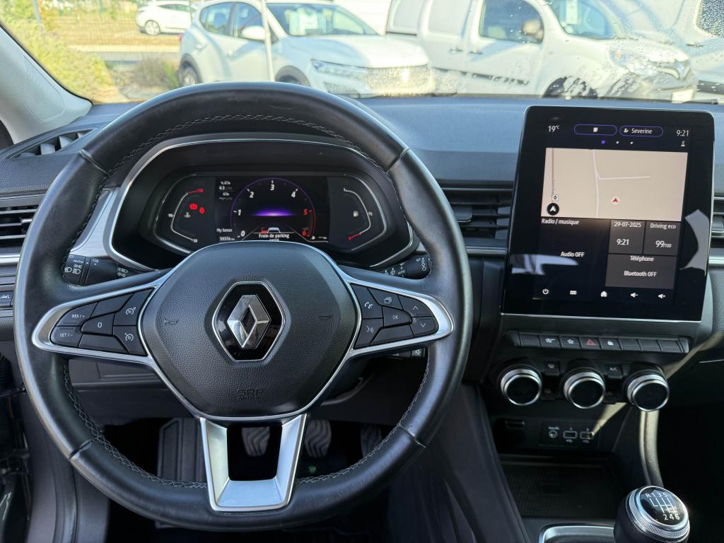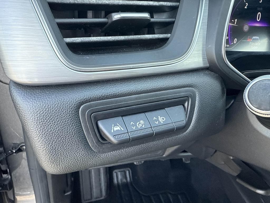 ABS avec aide au freinage d'urgenceAccoudoir / console centrale avec rangementAccoudoirs de porte gainés en matériau moussé noir pailletéAide au démarrage en côteAide au stationnement arrièreAirbags frontaux et latéraux (tête thorax),conducteur et passagerAlerte de sortie de voie avec volant haptiqueAlerte de survitesse avec reconnaissance des panneaux de signalisationAlerte distance de sécuritéAlerte oubli des ceintures de sécurité aux 5 places avec détection des occupantsAllumage automatique des projecteursAntenne courteAppel d'Urgence Renault: appel automatique en cas d'accident ou bouton SOS pour appel (112) en cas d'urgenceApplication finition chrome sur le volantAssistance au maintien de voieAumônières au dos des sièges avantBaguettes chromées sur le pare-choc arrièreBandeau de planche de bord gainé TEPBandeau supérieur de décor façon aluminium brosséBanquette arrière coulissante, rabattable 1/3-2/3 avec 3 appuis-têtes réglables en hauteurBouton de démarrage Start/Stop avec contour chroméCanule d'échappement chroméeCapteur de pluieCarte Renault mains-libresCeinture centrale arrière 3 points, avec prétensionneur et limiteur d’effortCeintures de sécurité conducteur et passager avant réglables en hauteurCerclages chrome satiné autour du pommeau de levier de vitesseCiel de pavillon tissé gris clairClimatisation automatiqueCoiffe supérieure de planche de bord mousséeCondamnation automatique des ouvrants en roulantCondamnation électrique centralisée des portes avec télécommande et condamnation des portes en roulantCoques de rétroviseurs noiresDéflecteur en chromeDésactivation manuelle de l'airbag passagerEASY LINK 7” et navigationEclairage avant et arrière Full LED Pure Vision avec signature lumineuse en forme de « C »Eclairage intelligent (commutation automatique feux de croisement/feux de route)Entourage aérateurs en chromeESC (contrôle électronique de la trajectoire)Feux de stop à LEDFrein de parking électrique avec fonction Auto-HoldFreinage actif d’urgence, avec détection des voitures, motos, piétons, cyclistes (jour et nuit)Indicateur de changement de vitessesInsert chromé sur les protections inférieures de portesInserts d'ailes avant chromésJantes alliage 18” Pasadena diamantées gris erbéJonc de calandre noir brillant avec inserts chromésKit gonflage de réparationLêcheur de vitre chromé avec effet pavillon flottantLève-vitre électriques à impulsionMode EcoMontants avant, milieu et arrière noirs brillantsPanneaux de porte avant avec bandeau supérieur et médaillon en matériau mousséPeinture bi-ton (toit, coques de rétroviseurs, montants de pare-brise)Plafonnier éclairage LEDPlancher de coffre modulable 2 positionsPoignées de portes couleur carrosseriePoignées de portes intérieures finition chrome satinéPommeau de levier de vitesses en cuirPrétensionneurs des ceintures et limiteur d efforts AV et AR latéralReconnaissance des panneaux de signalisationRégulateur et limiteur de vitesseRenault MULTI-SENSE, personnalisation des 3 modes de conduites (MY SENSE, ECO, SPORT) et des 8 ambiances lumineuses intérieuresRétroviseur intérieur électrochromeRétroviseurs extérieurs réglables, rabattables électriquement et dégivrantsSellerie TEP / tissu avec jonc grisSiège conducteur réglable en hauteurSiège passager réglable en hauteurSkis avant et arrière GrisSystème de détection de la pression des pneusSystème de fixation ISOFIX aux places latérales arrière et passager avantTableau de bord numérique 7” personnalisableTiroir Easy Life avec éclairageVitres latérales et lunette arrière surteintéesVolant cuirVolant réglable en hauteur et en profondeur