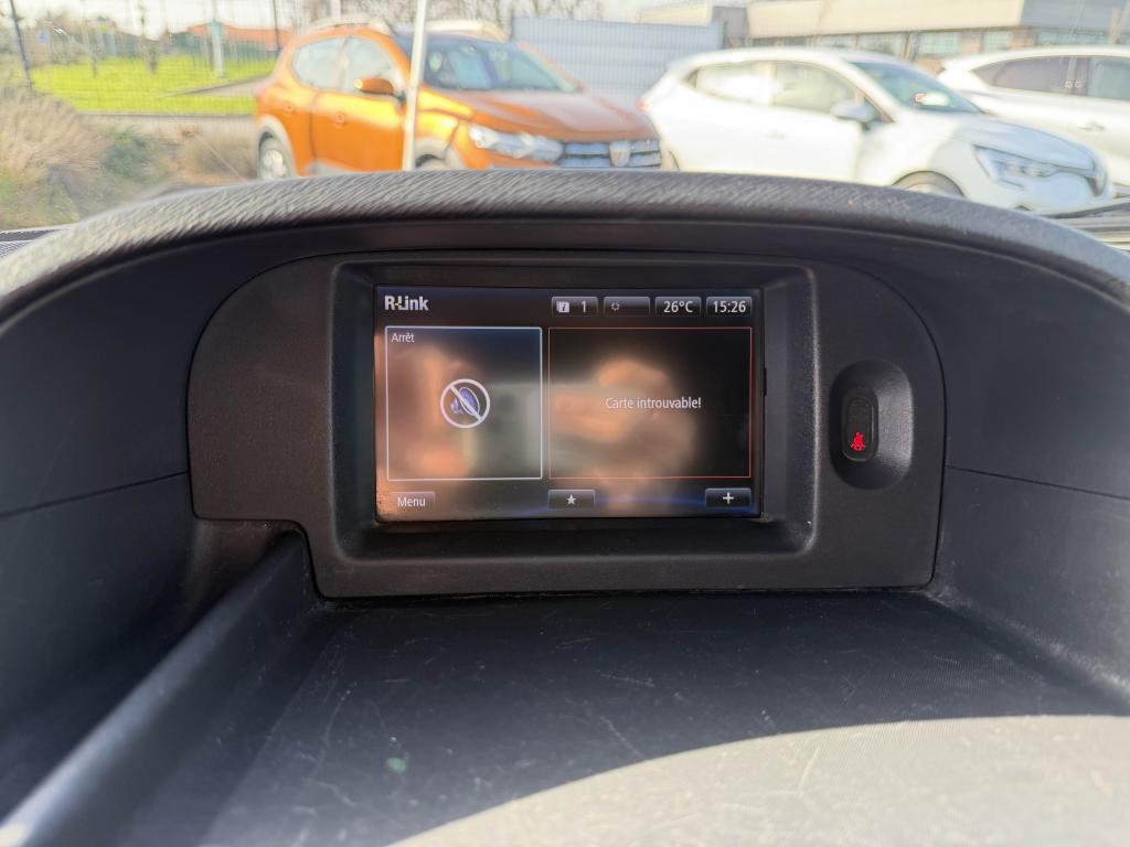 6 anneaux d'arrimage en zone de chargementAide au stationnement arrièreAirbag conducteurAlarme sonore d'oubli d'extinction des feux et voyant de fermeture des portesAlternateur 150 ABacs de rangement dans panneaux de portes avantBaguette de protection latérale Noir GrainéBoîte à gants de grande capacité (15l)Boîte à gants ferméeBoucliers avant et arrière & rétroviseurs noir grainéCeintures avant avec prétensionneurs et limiteurs d'effort, réglables en hauteurClimatisation manuelle avec filtre à pollenCloison complète tôléeCommandes d'ouverture des portes et des lève-vitres noirsCondamnation automatique des ouvrants en roulantCondamnation centralisée des portes avec commande à radiofréquenceDirection à assistance variable électriqueEclairage d'accompagnement "Follow me Home"Eclairage de l'espace de chargementEclaireur central avant 3 positionsEcomodeEnjoliveurs de roues pleins BRIGANTINFaçade de ventilation/climatisation et radio noir grainé avec jonc chrome satinéFreinage ABS (antiblocage des roues) + Assistance au Freinage d'Urgence (AFU) + Régulation de couple moteur au rétrogradage (MSR)Freins à disque à l'avantFreins à tamboursIndicateur de passage de changement de vitesse pour Eco conduiteLève-vitres avant électriques à impulsion côté conducteur (descente et montée)Médaillons de panneaux de portes avant plastiqueModule central de rangement/accoudoir entre les sièges avantOrdinateur de bordPack Navigation R-LinkPorte latérale droite coulissante tôléePortes arrière asymétriques tôléesPrédispositions barres de toit et galerieProtection plastique sous moteurRégulateur et limiteur de vitesseRétroviseurs extérieurs électriques et dégivrants avec sonde de températureRack de rangement au-dessus des places avantRangement dans la planche de bordRoue de secoursSellerie TanegaSiège conducteur réglable en hauteurSièges avant avec réglage longitudinal et inclinaison de dossier et appuis-tête réglables en hauteurSoufflet, pommeau et vignette de levier de vitesse carbone foncéSystème antidémarrage commandé par clé à transpondeurTableau de bord fond noir avec cerclage noir et compte-toursTapis de sol en caoutchouc dans espace de chargementTapis habitacle plastique noirVitres teintées à pouvoir filtrantVolant réglable en hauteurVoyant d‘alerte et alarme sonore de bouclage de ceinture conducteur