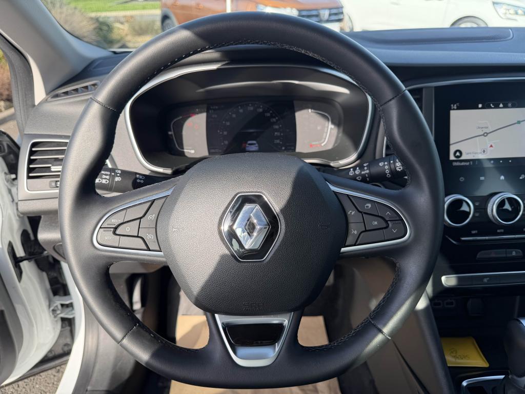 2 prises USB à l'arrière2 prises USB avant et 1 prise jackABS avec aide au freinage d'urgenceAccueil extérieur lumineux avec éclairage aux poignées de porteAide au démarrage en côteAide au stationnement arrièreAide au stationnement avantAirbags frontaux conducteur et passager adaptatifs (airbag passager déconnectable)Airbags latéraux (thorax / bassin) avantAirbags rideaux de têtes aux places avant et arrièreApple CarPlay sans fil et Android Auto filaireAppuie-tête avant et arrière règlables en hauteurBadge latéral noir brillantBanquette 1/3 - 2/3 fractionnable, dossier rabattable sans accoudoirCapteurs de toxicité et filtre combinéCarte Renault mains-libres avec fonction déverrouillage à l’approche et fermeture à l’éloignementCiel de toit Gris Sable clairClimatisation automatique bi-zoneCommande vocaleCondamnation automatique des ouvrants en roulantConsole centrale avec accoudoir avant réglable en longueur et rangement intérieurContrôle dynamique de trajectoire (ESC)Décor console centrale bordures chroméesDécors intérieurs motif Gris FoncéDétecteur de fatigueDétecteur de pluie et allumage automatique des projecteursFeux arrière avec signature lumineuse à LEDFeux clignotants arrière dynamiquesFeux de jour avant à LED avec signature lumineuse en forme de CFixations de siège enfant i-Size à l'arrièreGrille de calandre noir brillant et chromeJantes alliage 16” Impulse diamantées Gris ErbéKit de gonflageKit de réparation des pneusLève vitres électriques avant et arrière impulsionnelsNavigation embarquée avec cartographie EuropePare-brise feuilleté teintéPare-soleil conducteur et passager avec miroir de courtoisiePeinture Blanc GlacierPlafonnier avant à LEDPoches aumônières au dos des sièges avantPrise 12V à l'avantProjecteurs antibrouillardProjecteurs avant Led Pure VisionRadio Numérique DABRégulateur et limiteur de vitesseRétroviseur intérieur jour et nuitRétroviseurs extérieurs électriques et dégivrantsSellerie tissu gris foncéSiège conducteur avec réglage lombaireSiège conducteur réglable en hauteurSièges avant à réglage manuel longitudinalSon Arkamys 6 haut-parleursSystème de fixation Isofix sur places arrière latéralesSystème de surveillance de pression des pneusSystème Multimédia EASY LINK avec écran tactile 7”Tableau de bord avec écran numérique couleur 7”Volant gainé en similicuir Soft Touch réglable en hauteur et profondeur